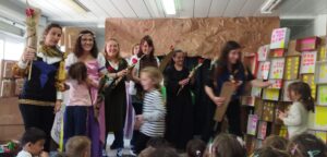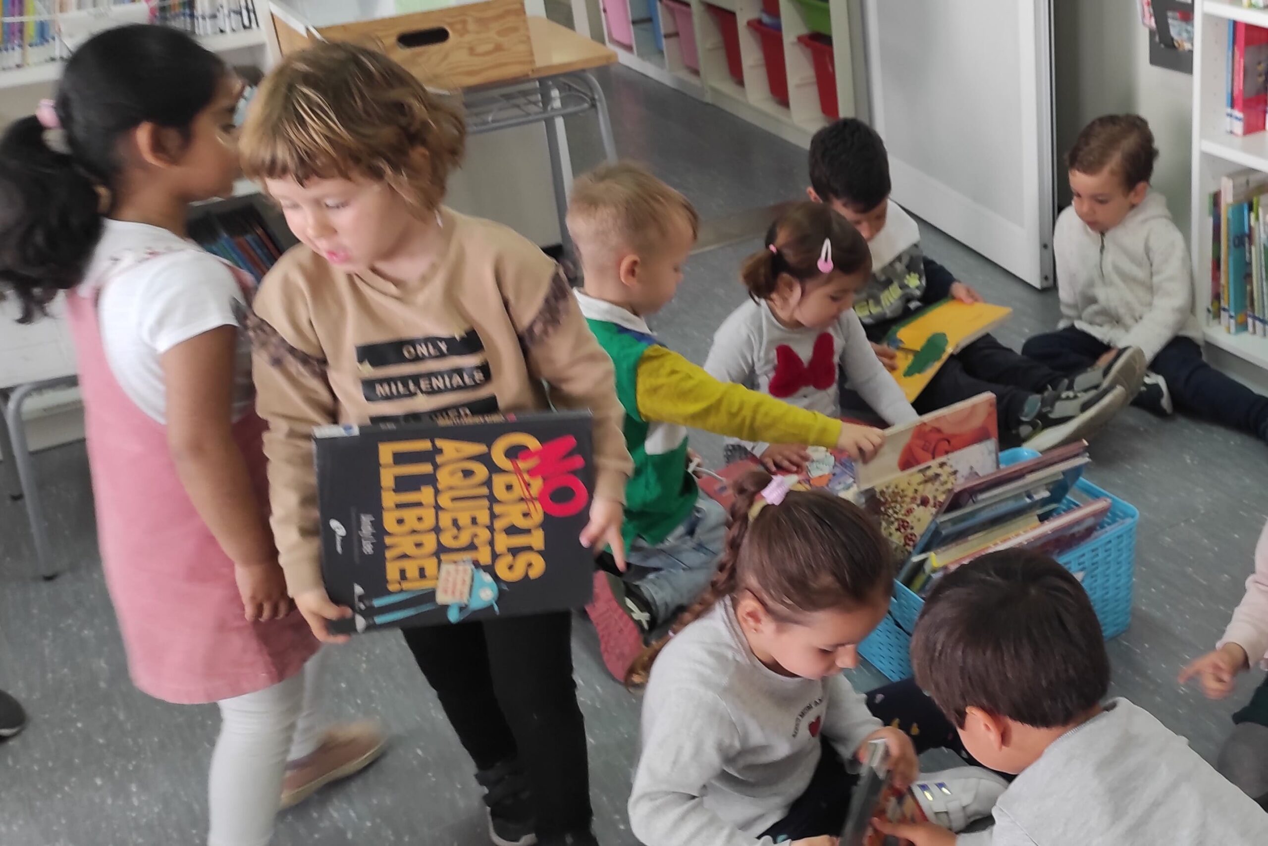 TAMBÉ HEM COMPARTIT UNA BONA ESTONA MIRANT CONTES A LA BIBLIOTECA DE L’ESCOLA I DEIXANT ELS NOSTRES LLIBRES A ALTRES NENS I NENES.