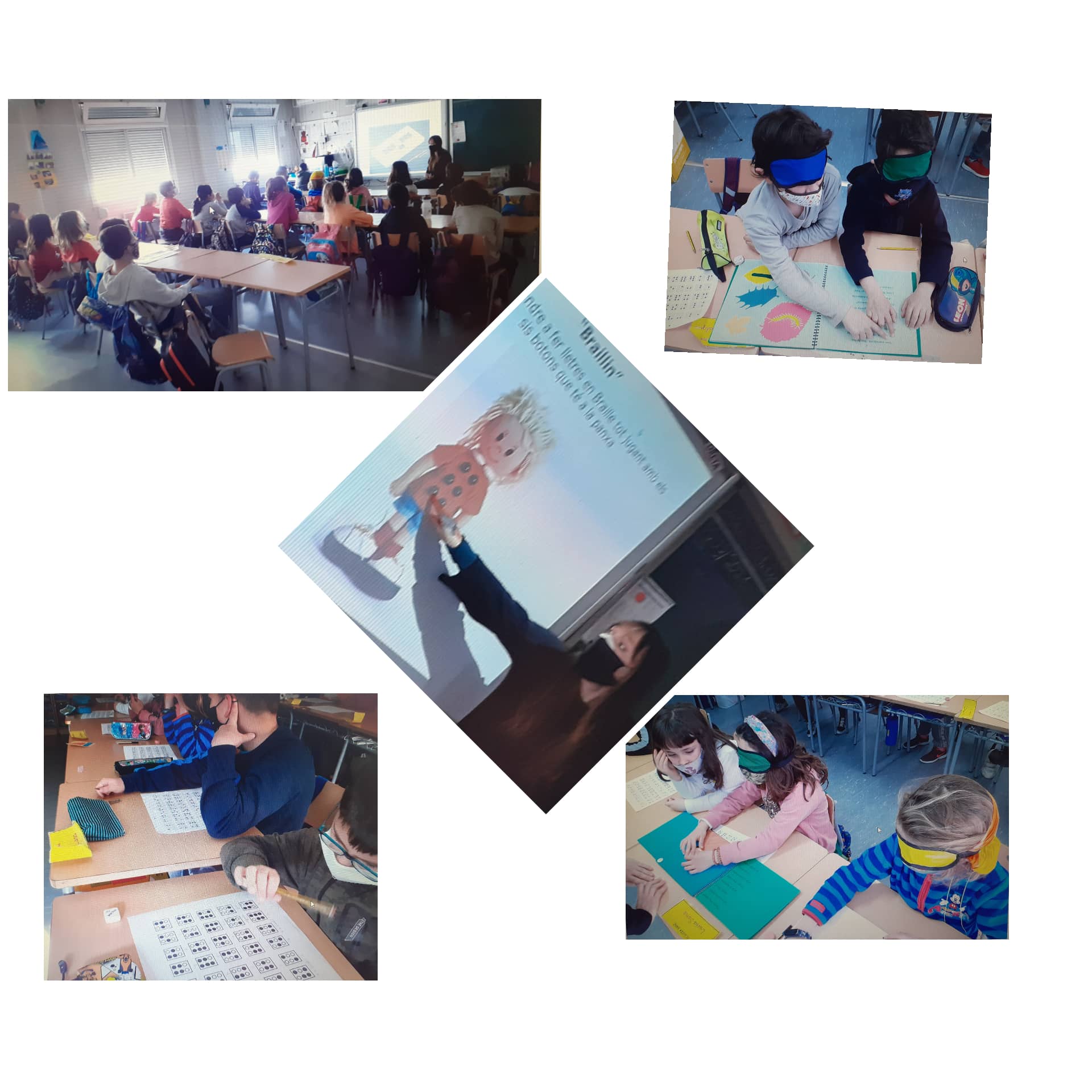 La Carmina ens va ensenyar a escriure en Braille, també ens va portar contes per “llegir” en Braille, és molt difícil!!!