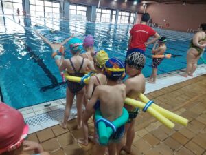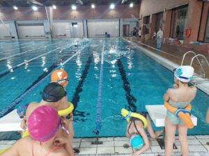 Venim a l’escola amb el banyador posat. A la motxilla portem tovallola gran, tovallola petita pels peus, ulleres d’aigua, “gorro” o casquet, roba interior i xancletes o mitjons d’aigua.