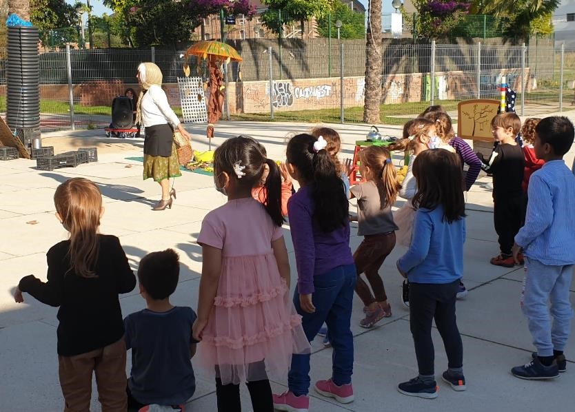 SÍ, L’OLGA ENS HA REPRESENTAT EL CONTE  DE LA CASTANYERA AL PATI I HEM POGUT BALLAR AMB UN MUNT DE CANÇONS DE LA TARDOR QUE SABEM.