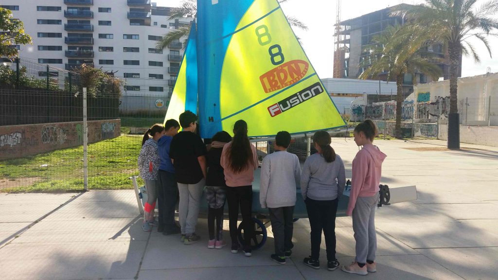 L’alumnat de cinquè ja ha gaudit del primer contacte amb la vela. Durant la primera sessió vam conèixer els instructors, l’Albert, en Pau i en Xavi, que ens van explicar les parts d’un Fusion (un petit veler), els noms dels diferents rumbs segons on bufa el vent i les nocions bàsiques de seguretat. La part