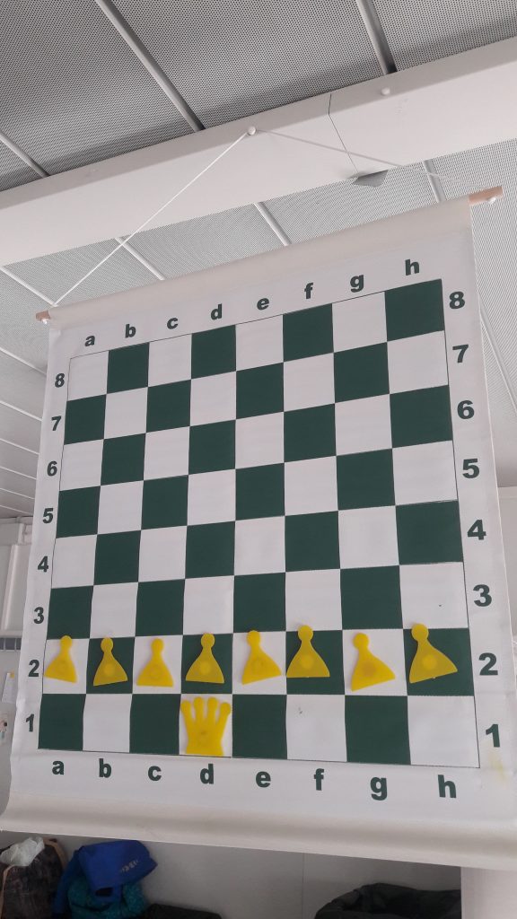 Avui els infants de primer ja han començat a fer partidetes introduint la peça del peó. Han après que no important guanyar ni perdre, sinó aprendre de l’altre i una norma bàsica en començar i acabar el joc és desitjar-se: BONA PARTIDA!!!