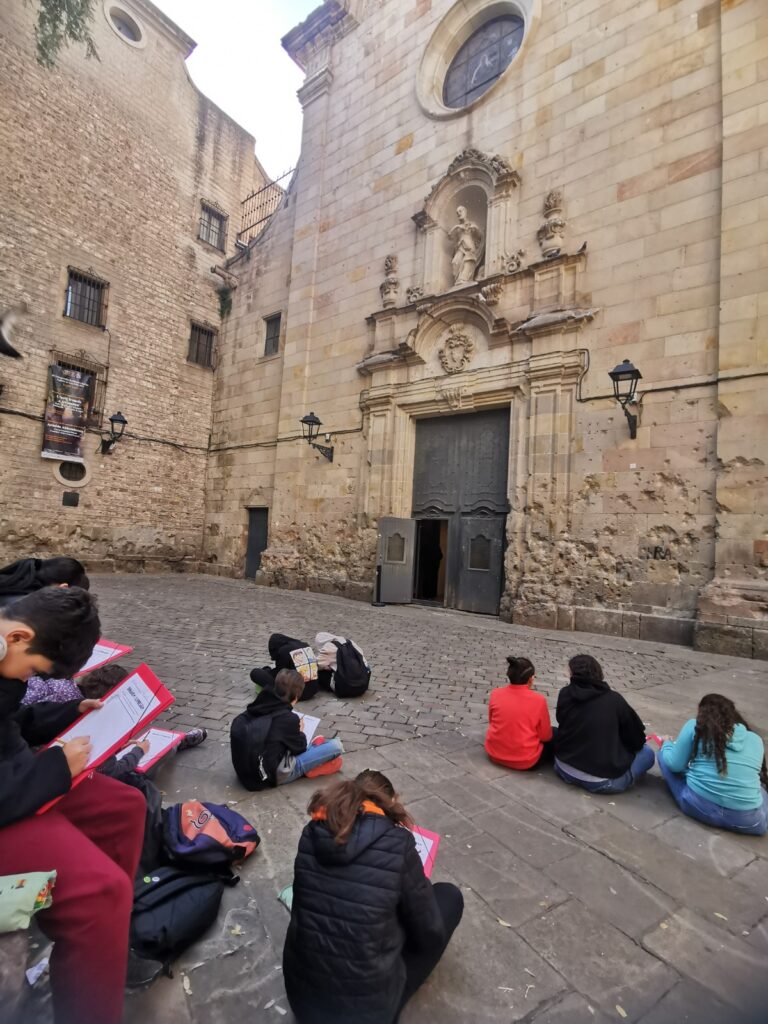Hem visitat la plaça Sant Felip Neri i hem conegut la tragèdia que hi va passar: l’any 1938 van morir 42 persones en caure una bomba dels franquistes. Vam estar dibuixant i posant-nos en la pell d’aquelles persones que van viure aquesta situació tan injusta. Podeu veure algunes fotografies de com vam estar dibuixant al natural.