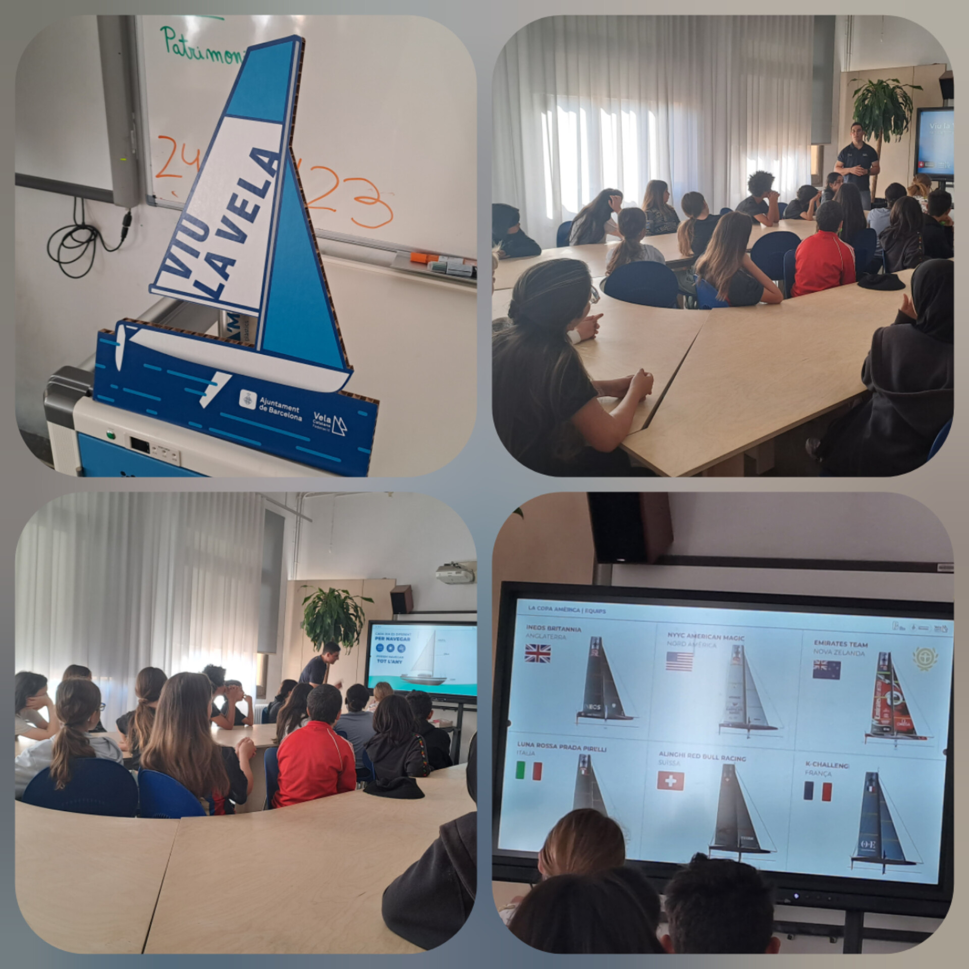 Com ja sabeu, ben aviat, amb les alumnes de 6è, anirem a fer Vela al Reial Club Marítim de Barcelona, gràcies al projecte “Viu la Vela”, que ofereix l’Institut Barcelona Esports. És per això que el passat dimecres 24 de maig, a l’escola, va venir el Ricard Castellví Melià, un esportista professional de vela. Ens va explicar a què es dedicava, quins tipus d’embarcacions de vela hi ha i quines parts té cada embarcació. També ens va parlar de la Copa Amèrica de Vela, que l’any vinent, serà a Barcelona i ens va recordar una sèrie de mesures que hem de prendre per tal d’intentar ser més sostenibles amb el mar i contaminar-lo menys.