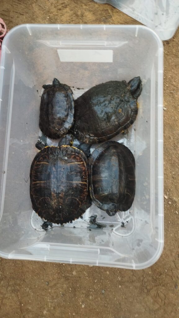 No ens haguéssim imaginat mai que aquelles tortuguetes tan petitones arribessin a fer-se tan grans! Han anat passant els anys i s’han convertit en uns animalons massa grans per al nostre estany. Han anat a viure a Masquefa, al CRARC (Centre de recuperació d’amfibis i rèptils).