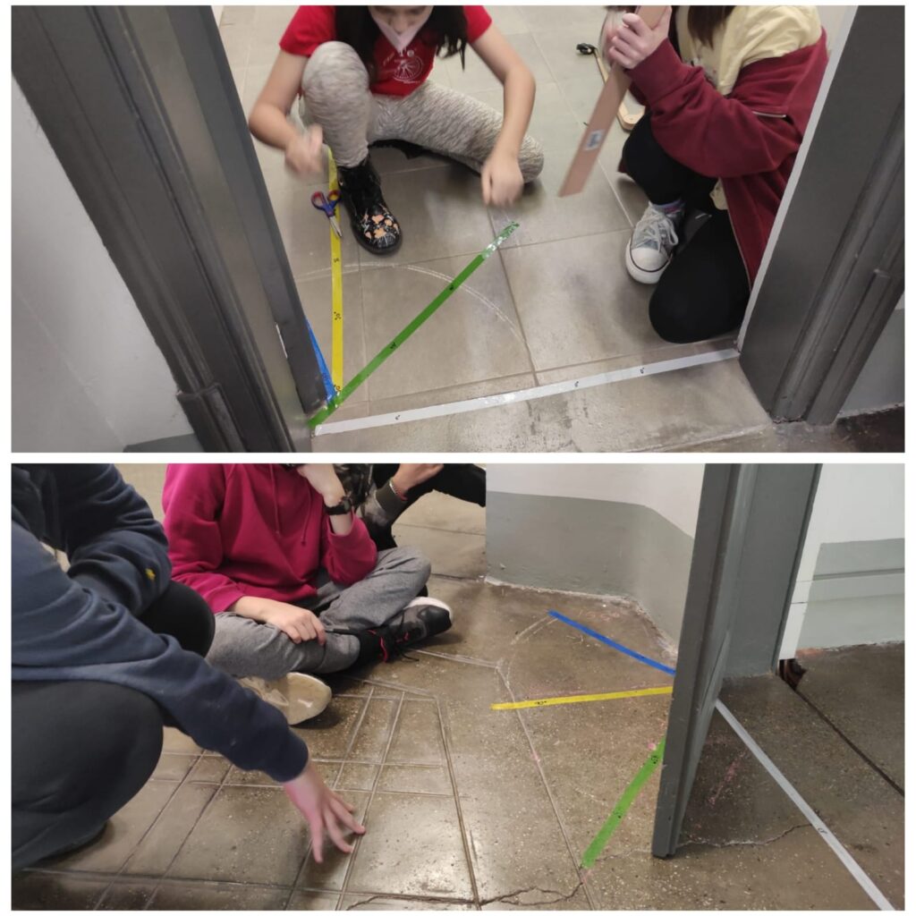 Continuem fent matemàtiques de forma manipulativa, divertida i resolent reptes. L’alumnat de sisè hem estat repassant la classificació dels triangles i els diferents angles i hem decidit calcular diferents angles d’algunes portes de la nostra planta.