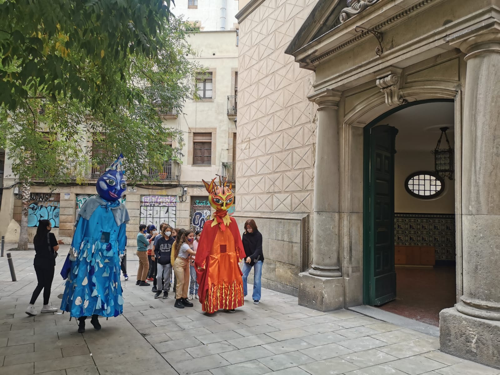 avui l’alumnat de sisè hem tret els gegants de l’escola, l’Aigua i en Foc per fer-los ballar, ja que demà anirem a l’edifici d’infantil i acompanyarem als infants i a les seves famílies d’infantil al patí Carmé Simó per fer la trobada de totes les famílies.