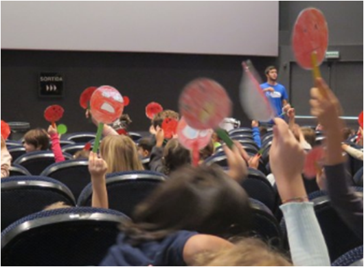 Els nens i les nenes van al Festival com a “periodistes acreditats” i després de veure 7 pel·lícules diferents voten quina és la que més els ha agradat amb la piruleta que hem fet a l’escola especialment per a l’ocasió.