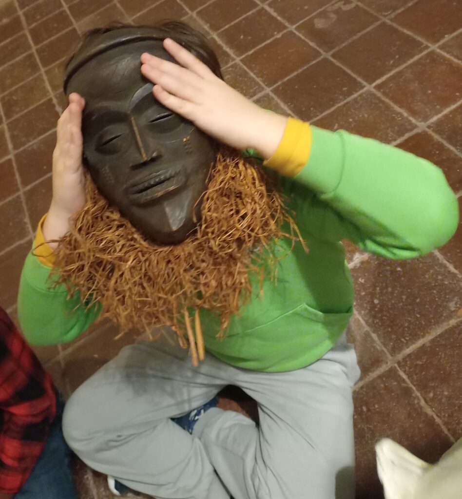 Els nens i nenes de 1r hem anat al Museu Etnològic a fer el taller “Posa’t la màscara” per ampliar els coneixements d’Àfrica que estem treballant a l’aula. Per nosaltres les màscares tenen un caràcter festiu i també ens permeten imaginar altres personatges; en canvi per Àfrica tenen un significat més seriós. En forma humana, animal o motius abstractes, les màscares han servit per connectar amb els esperits, els ancestres o el més enllà i quan algú se la posa el transforma donant-li poder per curar, protegir, espantar… Hem acabat la visita fent la nostra pròpia màscara i pensant perquè la podem fer servir.