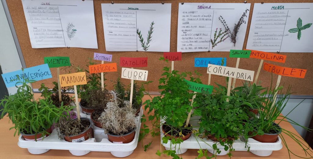 Els nens i nenes de 2n hem treballat les plantes aromàtiques. A la classe les hem observat, les hem tocat , les hem olorat, hem vist les  diferencies que tenen i les hem dibuixat al natural. De cada planta hem fet un fitxa on hem fet una descripció i hem explicat els usos i beneficis que tenen. Hem après que les plantes aromàtiques no només s’utilitzen a la cuina ja que aporten sabor i aroma als plats, sinó que també són beneficioses per la salut i el benestar ja que tenen propietats terapèutiques. Hem gaudit fent una bosseta aromàtica de lavanda i tastant una infusió de poleomenta. Així hem ampliat el nostre vocabulari amb paraules com: planta aromàtica, arbust, perenne, infusió i condiment entre altres. Hem recollit tota la feina feta en un àlbum.