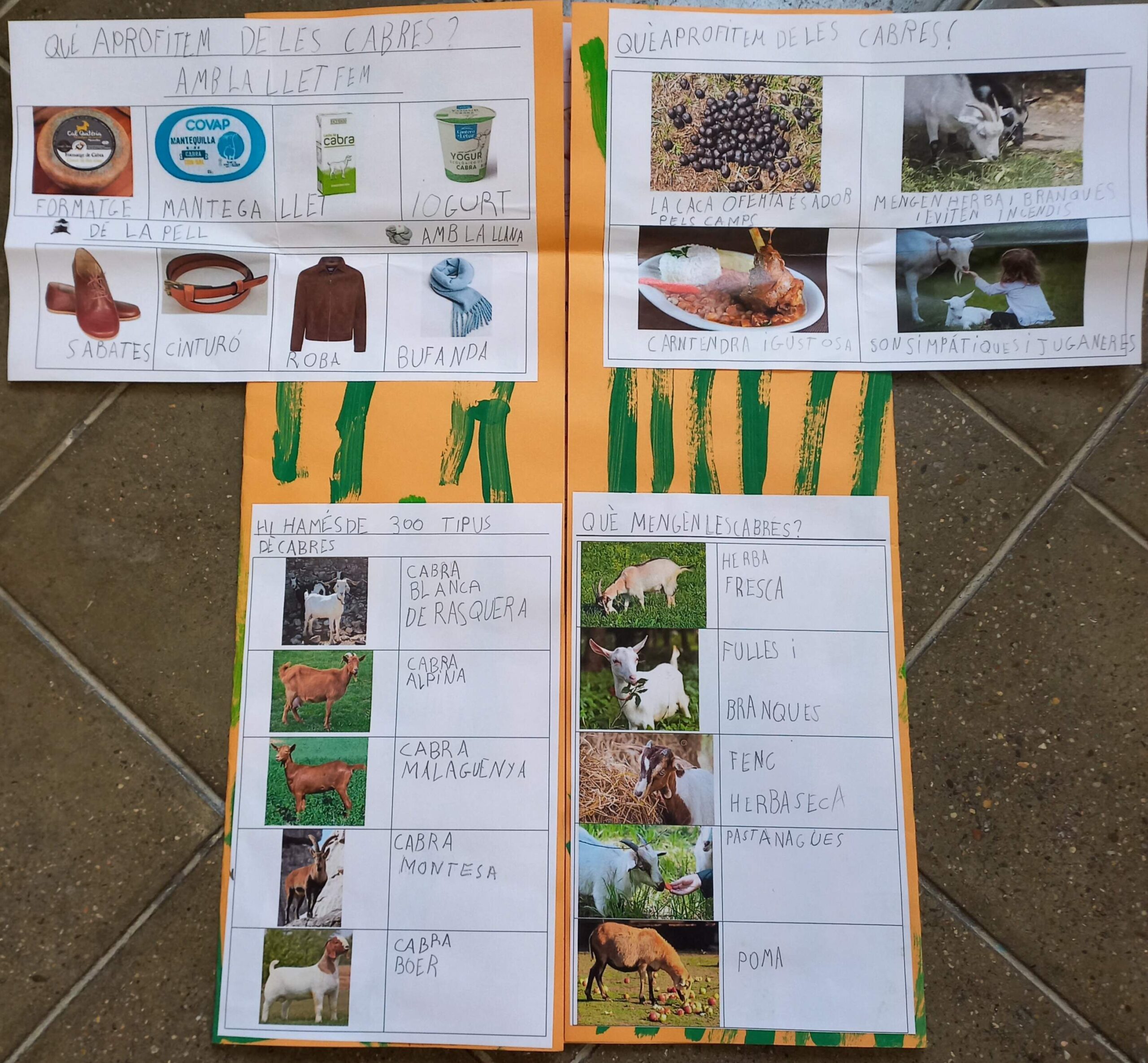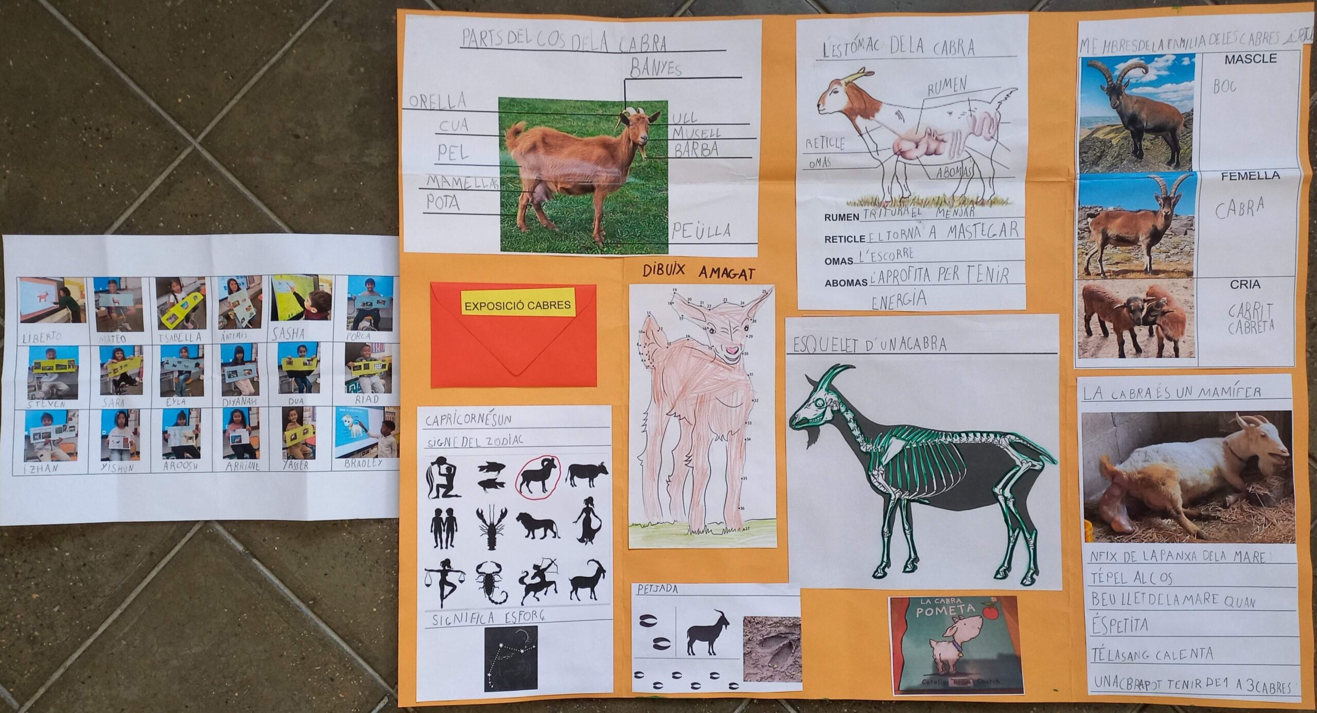 Els nens i nenes de primer ens hem interessat per les cabres. Cada un dels i les alumnes ha fet una petita exposició sobre aquest mamífer. Hem après les parts del cos de la cabra en català, en castellà i en anglès gràcies a la diversitat lingüística de la nostra aula. També què mengen, tipus de cabres, on viuen, perquè és un mamífer, com és l’esquelet, quina forma té la seva petjada, que capricorn està representat per una cabra, que “goat” és cabra en anglès, com funciona el seu estómac, la família de les cabres i els seus beneficis. Hem explicat el conte de “La cabra pometa”. Amb tot hem ampliat el nostre vocabulari amb paraules com: boc, peülla, petjada, salvatge, domèstica o remugar entre d’altres. Totes les feines que hem fet han quedat recollides en un lapbook.