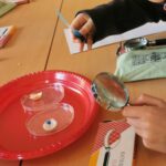 Hem fet servir càpsules de petri, pinces, lupes de mà, colorant alimentari i lupes binoculars.