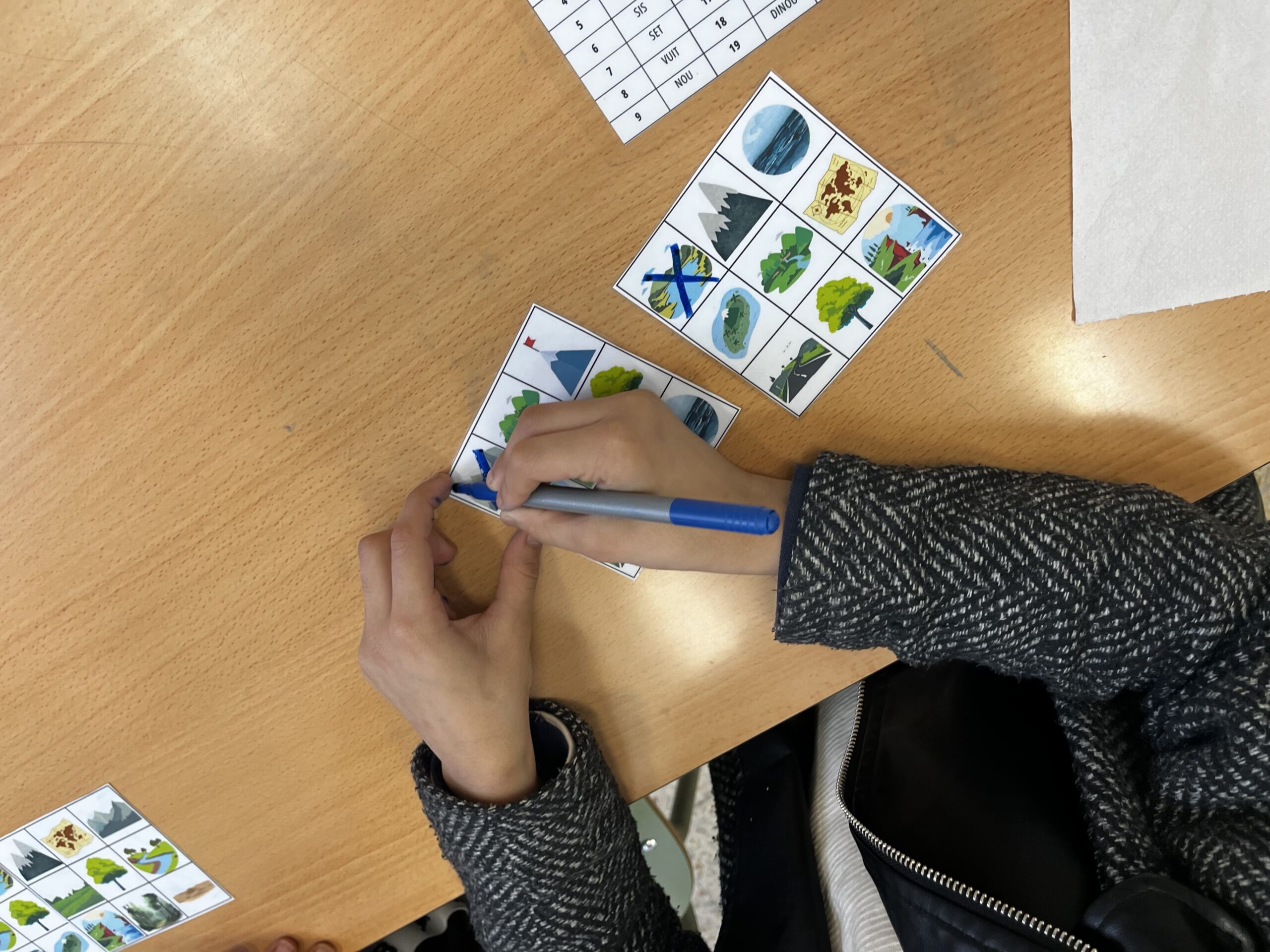 A més, gràcies a diferents jocs, hem anat adquirint vocabulari en relació amb el paisatge i el relleu de la natura. Per exemple, hem jugat a un bingo que ens ha servit per recordar com es diu cada element en català, com ara: la muntanya, el mar, la platja, el llac, el riu, etc.