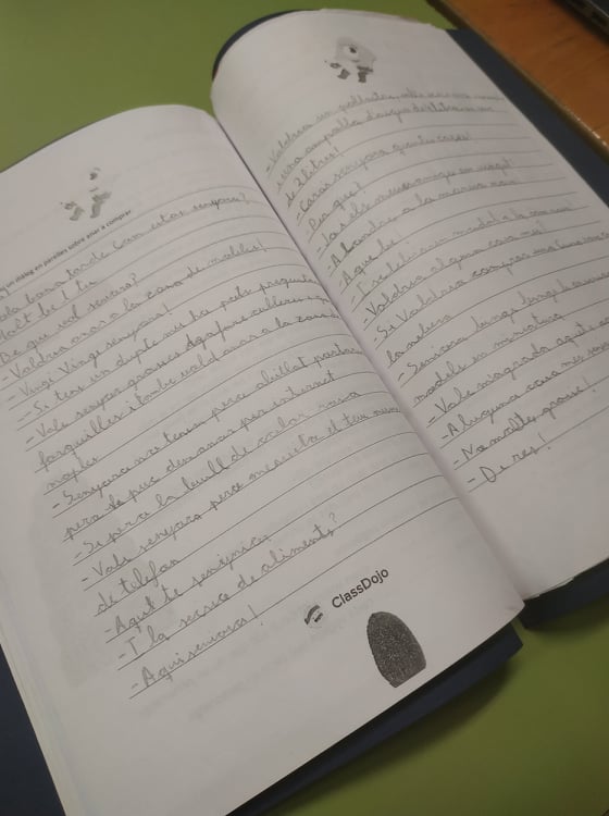 11/01/21Els alumnes de 4t hem estat treballant el diàleg i com s’utilitzen els dos punts (:) i el guionet (-) en aquest tipus de text. Per parelles vam inventar un diàleg d’anar a comprar i després el vam representar per a la resta de companys. I vam crear la nostra pròpia botiga i tot!