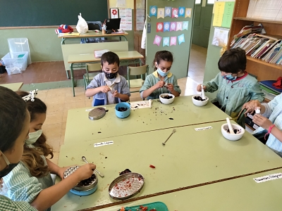 31/05/21Ja fa uns mesos que ha vingut a la nostra CLASSE, la Laura, una noia que fa pràctiques a la classe dels peixos, la classe de P5 ! Estem molt contents i contentes, encantats i encantades amb ella ! Amb ella, hem treballat unes càpsules d’art i matemàtiques. Hem fet classificacions amb fruita, hem fet ordenacions amb ampolles, hem fet seriacions amb blocs lògics, hem fet aparellaments…