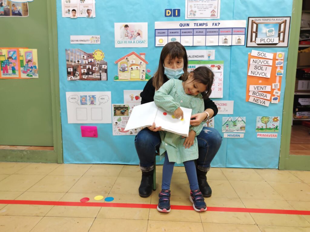 Ens l’hem trobat amagadet entre uns matolls, tremolant de fred i mort de gana. Després de donar-li la benvinguda, la Tània i la Maite ens han ajudat a portar-lo de seguida a dins de l’escola per tapar-lo amb una manta.