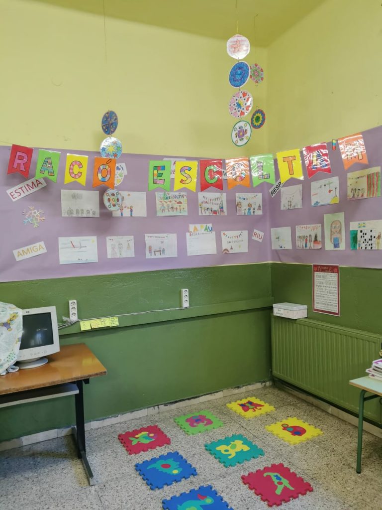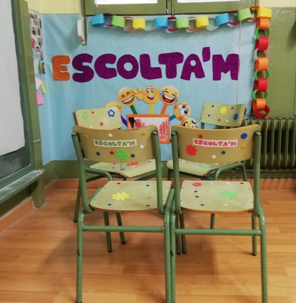 Per això, durant el mes de NOVEMBRE, hem començat a les nostres aules, el projecte ESCOLTA’M !! Enguany, degut a la COVID 19, hem hagut de reinventar els espais i cada nivell, s’ha creat el seu propi i acollidor espai !! Hem creat un espai físic a l’aula on fer “Escolta’m” un cop a la setmana.