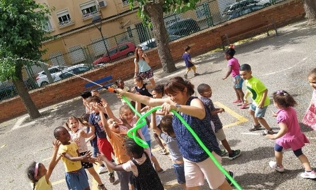 Ventilador a l’aula, beure molta aigua, llum apagada, finestres baixades… i avui a l’hora del pati a Educació Infantil i Cicle Inicial, hem decidit refescar-nos a cop de mànega!!!