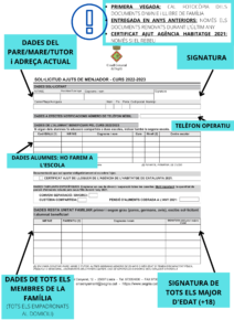 3. A casa, cal emplenar: dades dels pares, adreça, telèfon, dades de totes les persones de la família que viuen a casa, i SOBRETOT SIGNAR TOTES LES PERSONES MAJORS DE 18 ANYS