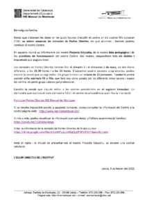 O bé, la informació de la Jornada de Portes Obertes de fa dos cursos: