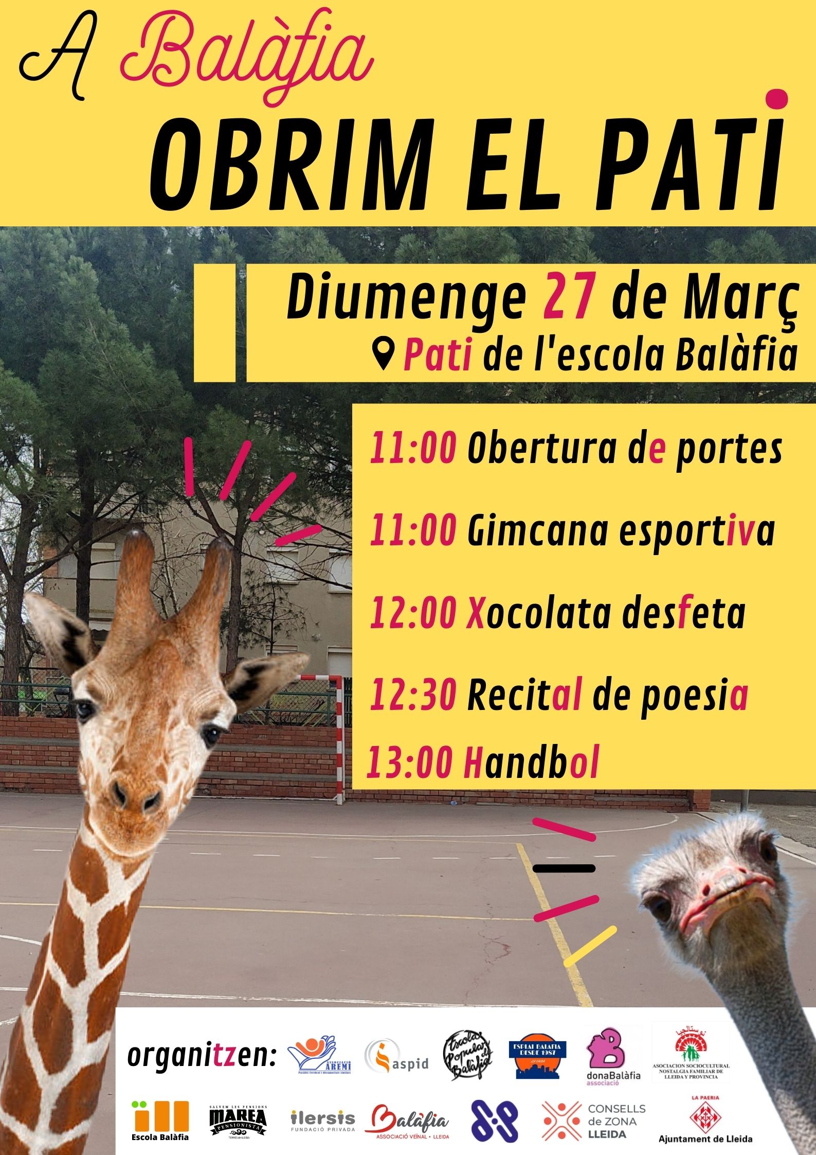 Això consisteix en que els caps de setmana (dissabte i diumenge) el pati de l’escola es convertirà en plaça pública.