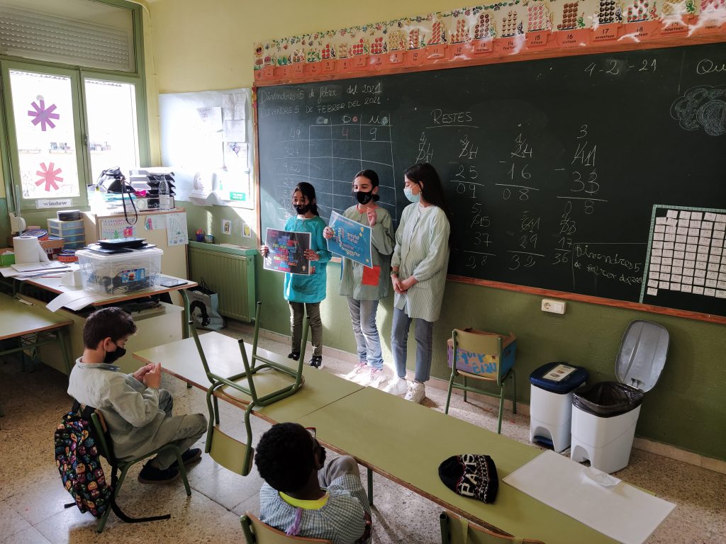 Aquest matí, alumnes de 6è han anat a entregar els cartells que havien creat, la setmana passada, per tal de commemorar el dia de la Pau.