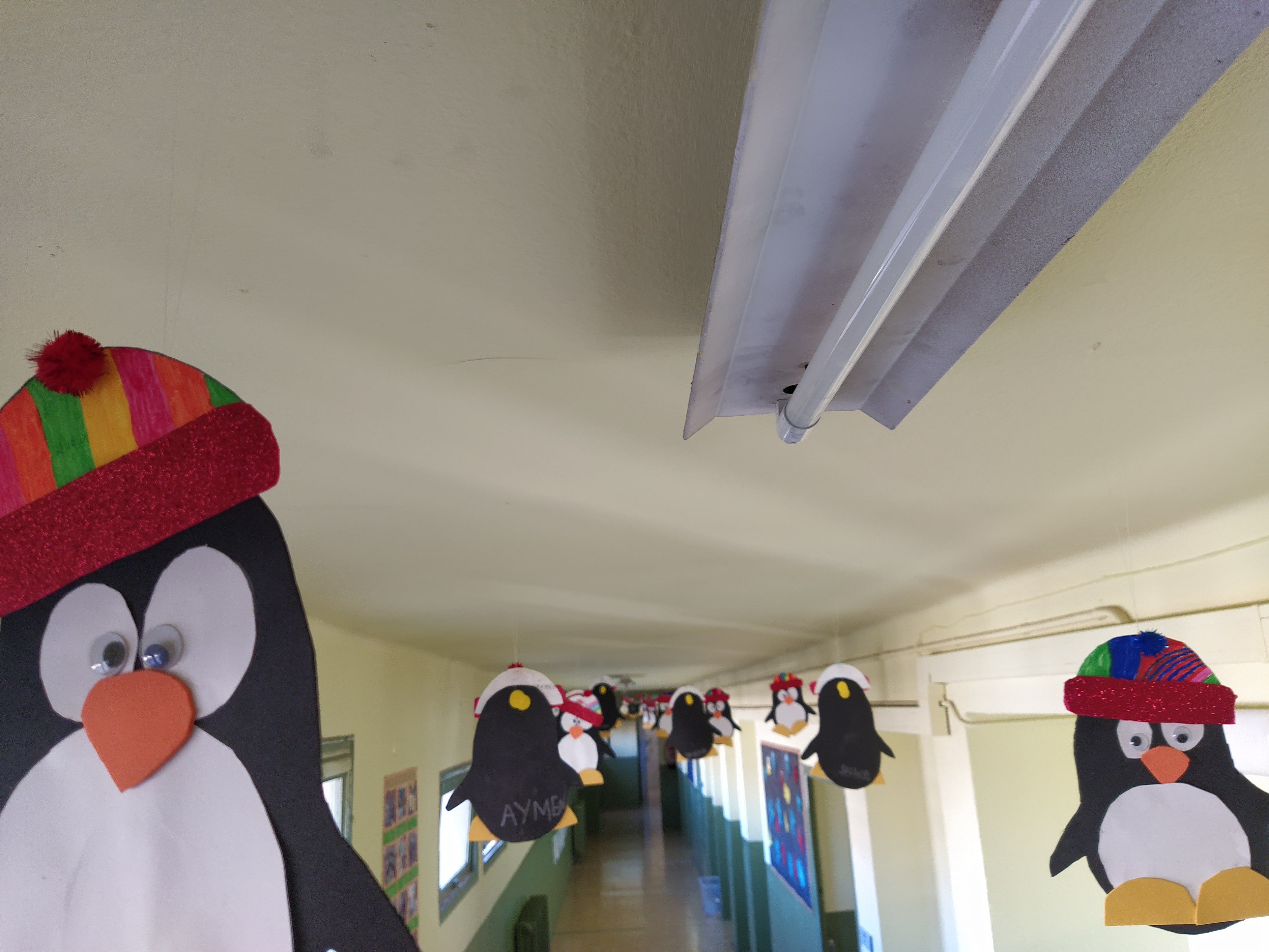 Atenció! Atenció! Ha arribat una colònia de pingüins al passadís de Cicle Superior! No sabem si són pingüins Emperador, pingüins de les Galàpagos o Pingus.