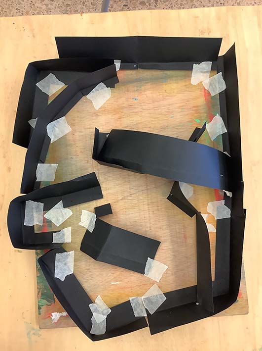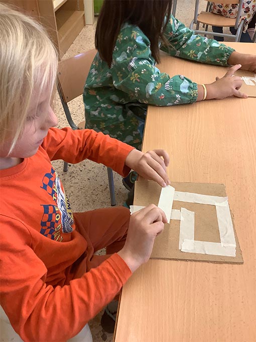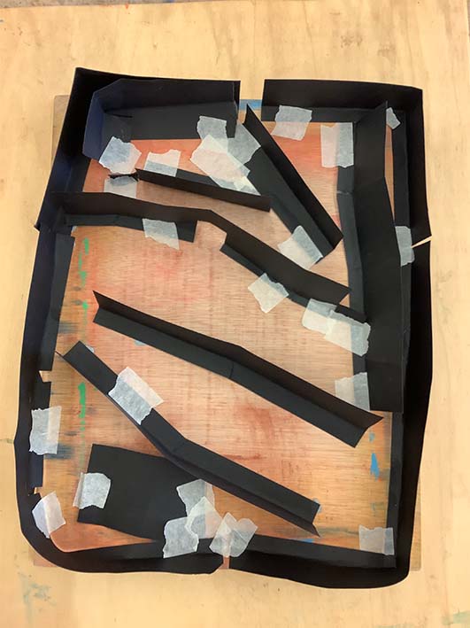 Fem reserves amb cinta adhesiva de pintor, una tècnica que ja coneixem del curs passat.