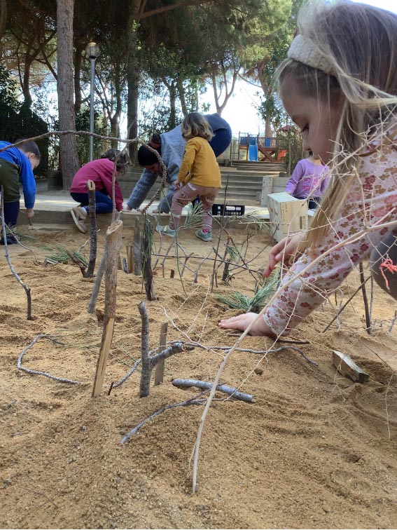 El segon trimestre, el grup dels GOSSOS (I3) van recollir una pila de branquillons del bosquet. A partir d’aquí van utilitzar el material per jugar i anar treballant la classificació, comparant i ordenant: llarg/curt, prim/gruixut.