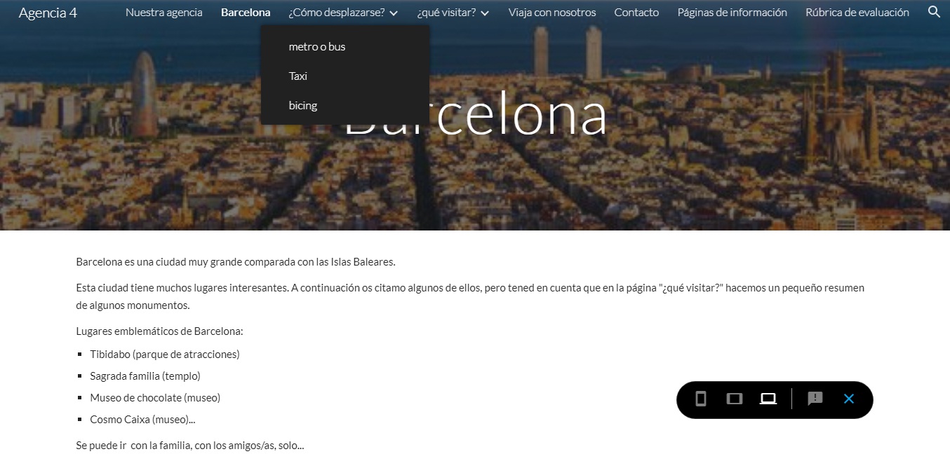 Con la profesora de castellano, Ester, estamos creando una página web sobre unas agencias de viajes, centradas especialmente en la ciudada de Barcelona. Lo hacemos en el aula de informática mediante los ordenadores.