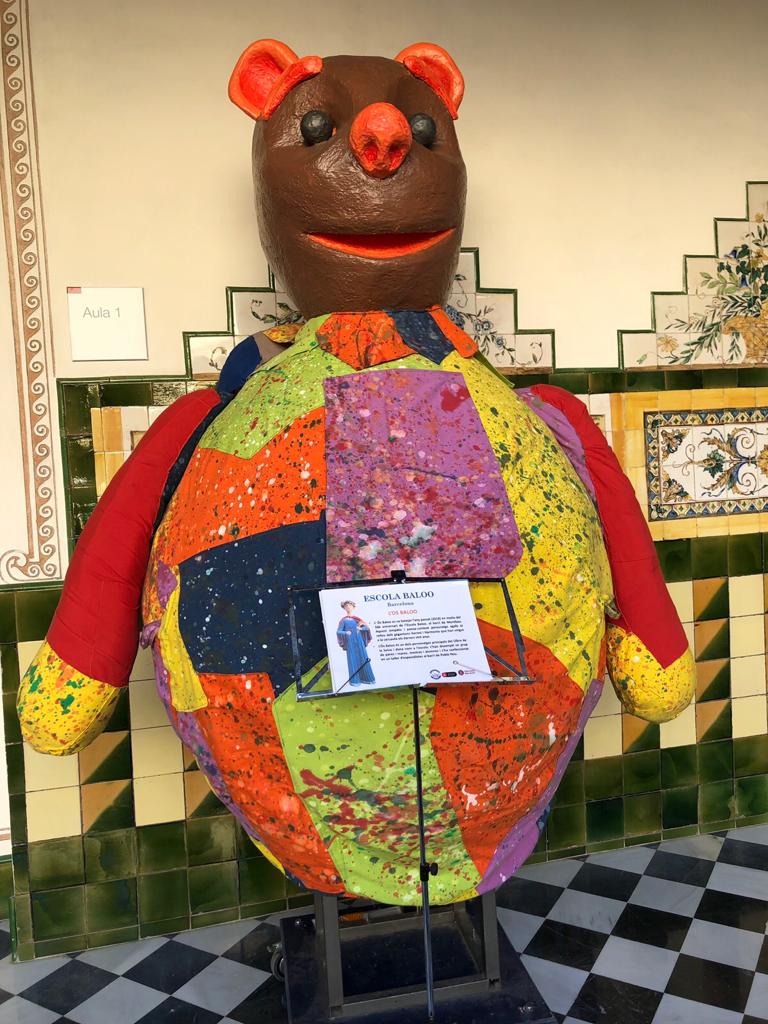 L’Ós Baloo, el gegantó de l’Escola, està exposat aquests dies al Pati Manning (C/Montalegre 7) amb motiu de la Mostra de Gegants i Gegantons de les Escoles de Barcelona.