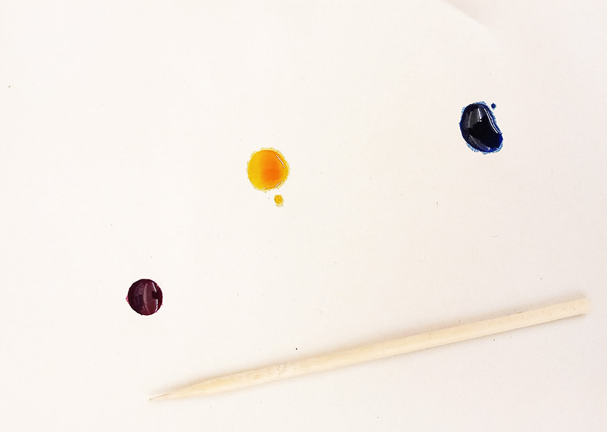 Continuem investigant amb les gotes, ara ja coneixem la tècnica. Aquest cop amb aquarel·les de colors i pinzells fins. Apareixen formes increïbles i colors inesperats… verds sospitosos.