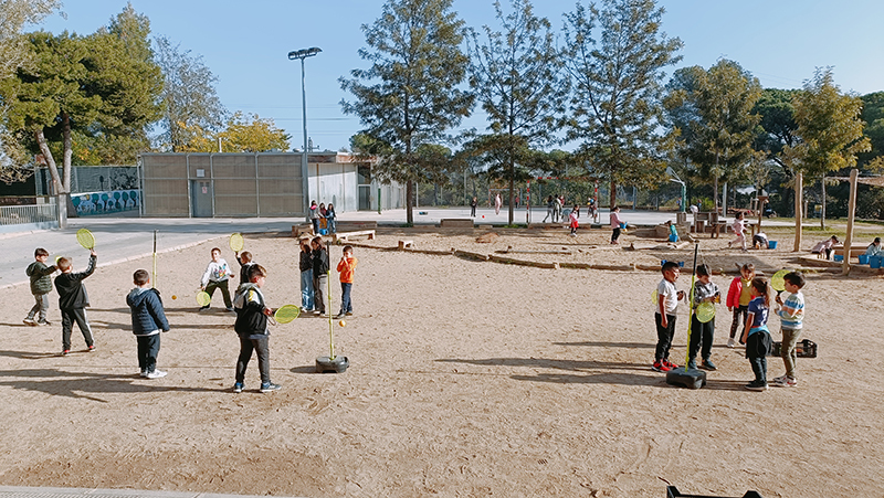 Aquest trimestre, hem renovat i ampliat el material de joc disponible per als infants durant l’hora del pati. Ara disposen de pilotes, cordes, altaveu, pales i altres jocs que fomenten l’activitat física i la creativitat. Els infants estan encantats amb aquestes novetats i cada dia aprofiten l’hora del pati per divertir-se, fer esport i compartir
