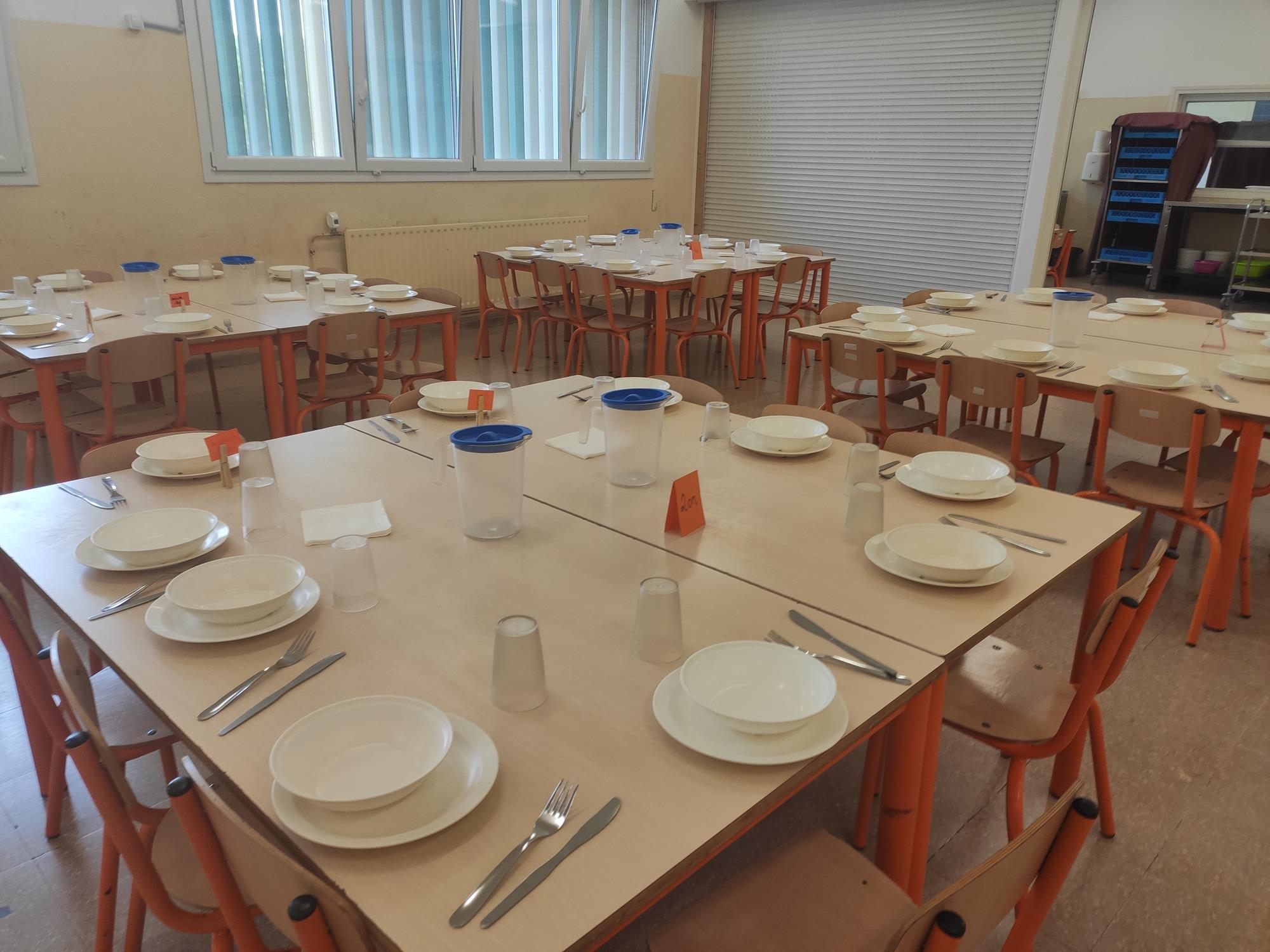 Planta baixa: menjador, llar d’infants, lavabos, sala de famílies, secretaria, aula escolta’m, despatx de menjador i consergeria.