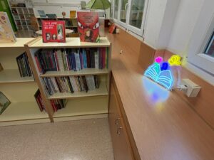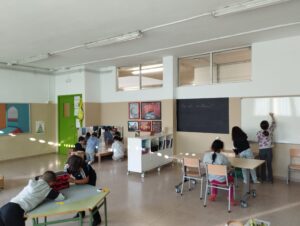 – Segona planta: aules de 3r i comunitat de grans (4t, 5è i 6è), lavabos, aula d’Anglès i Atelier