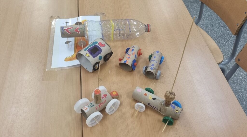 Per culminar aquest treball, l’alumnat, organitzat en grups cooperatius, ha dissenyat i construït un vehicle utilitzant diversos materials.