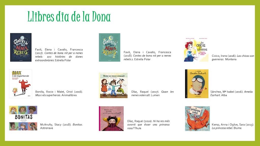 Benvolgudes famílies, Demà és 8 de març, dia internacional de la dona treballadora. És per això que us recomanem uns