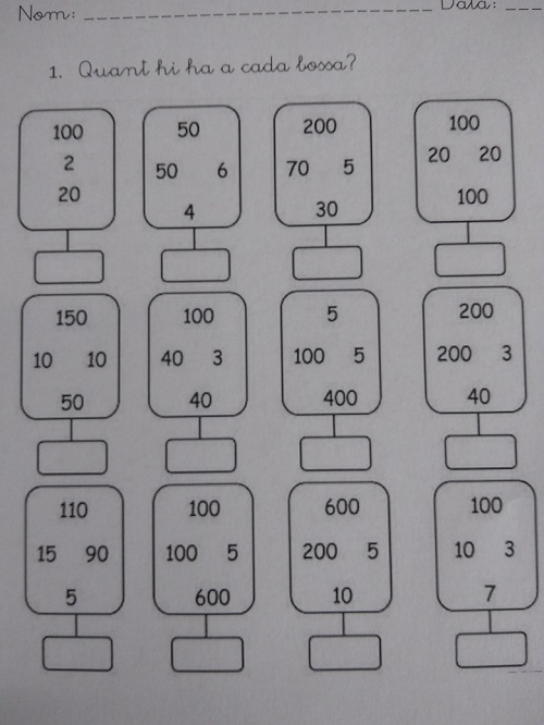 Continuem practicant el càlcul a segon de primària i la composició i descomposició de nombres amb els “sacs” i els