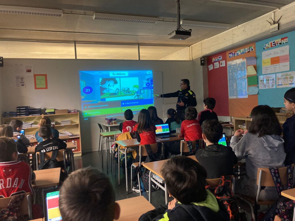 Avui a 5è hem rebut la visita de dos policies locals, que ens han fet la xerrada d’internet segura. Hem