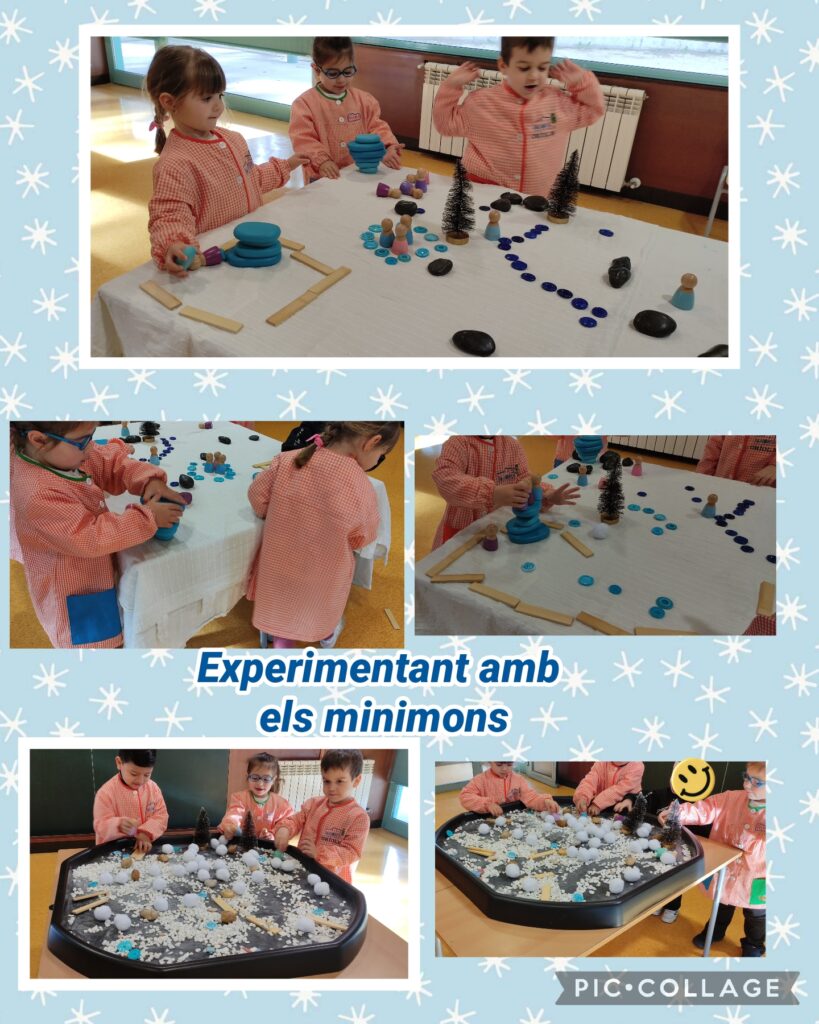 Els nens i nenes d’I3 avui hem experimentat en dos espais diferents: l’aula de joc simbòlic i l’aula de minimons.