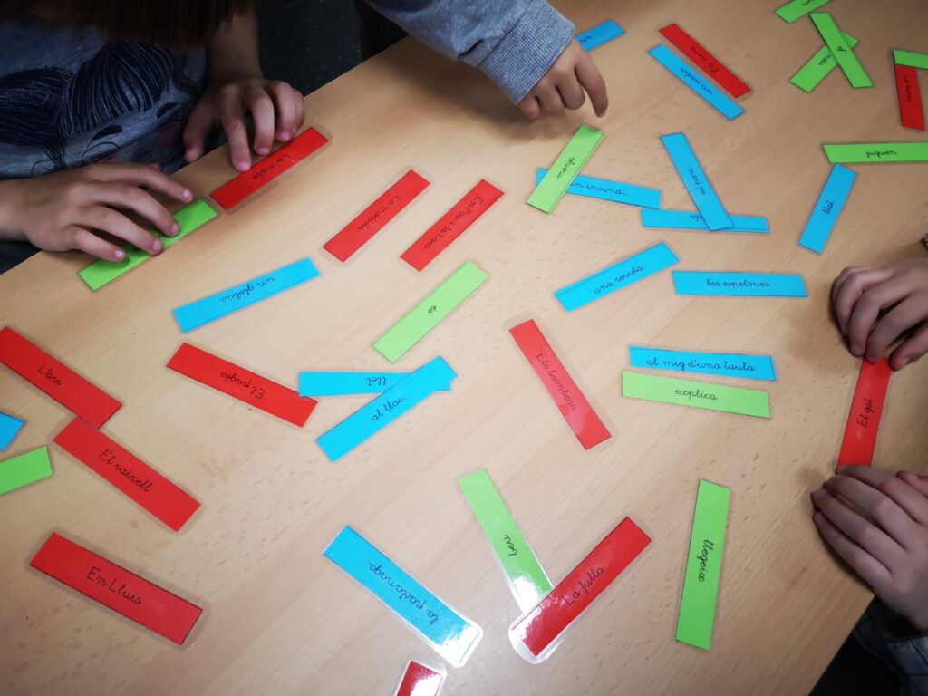Els nens i les nenes de primer estem treballant les frases. Per aquest motiu, en algunes sessions de llengua catalana