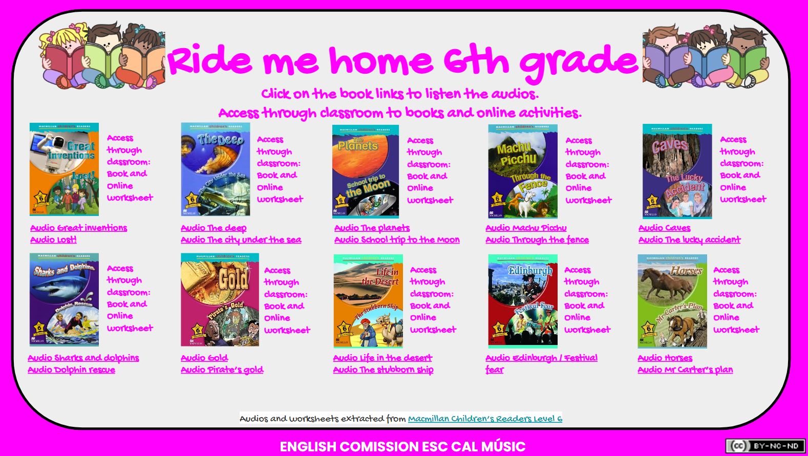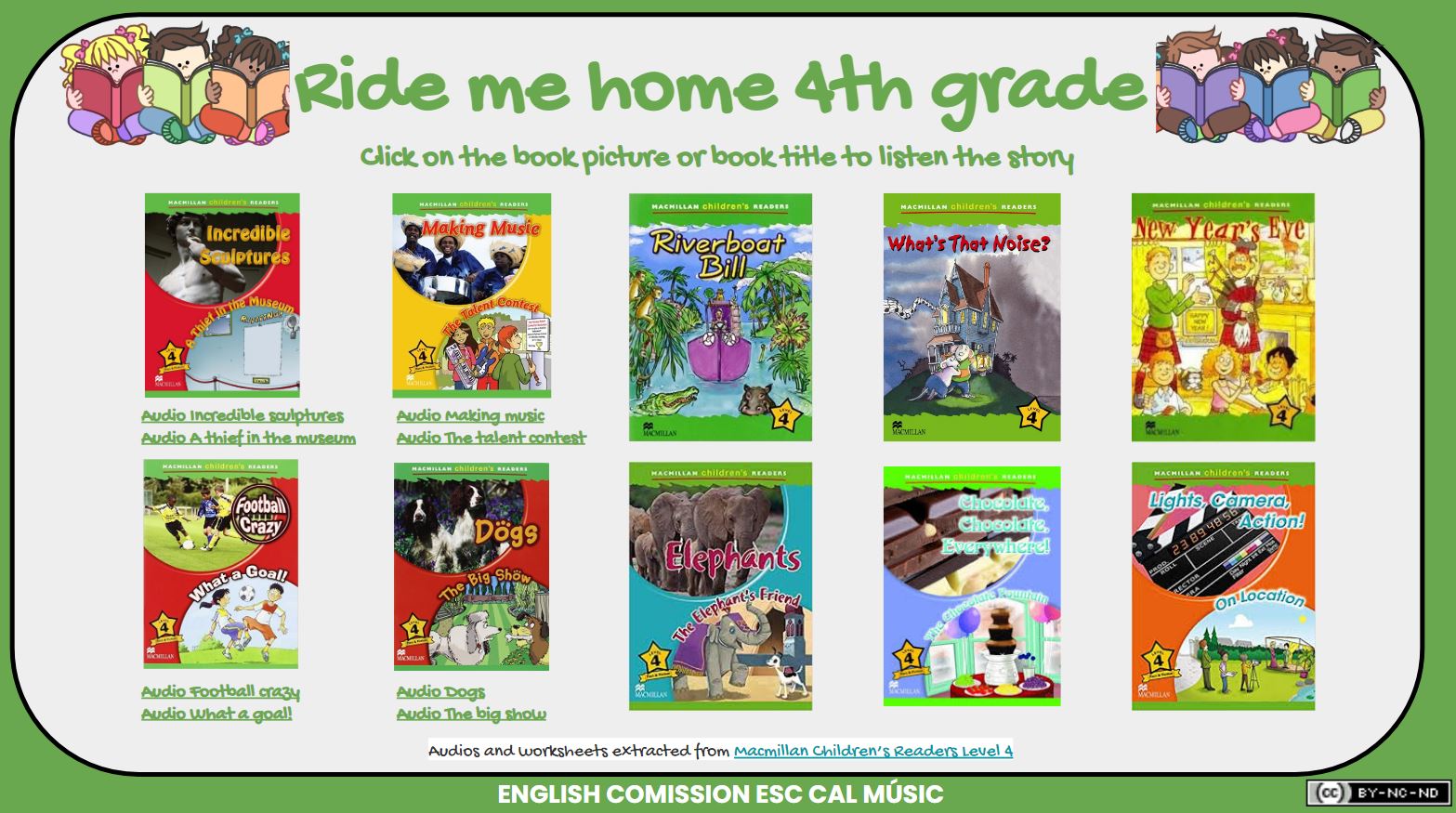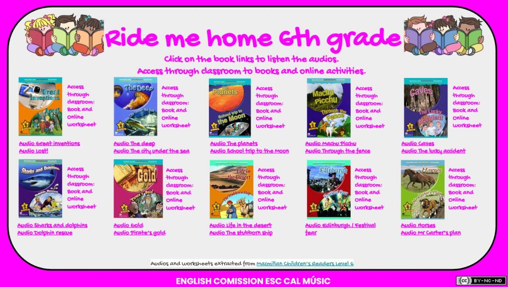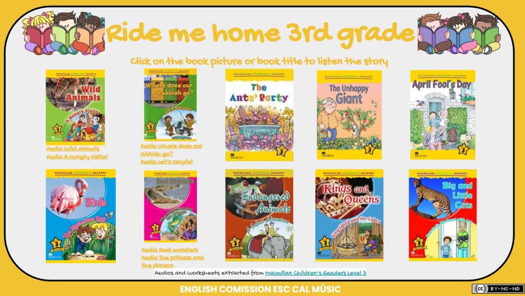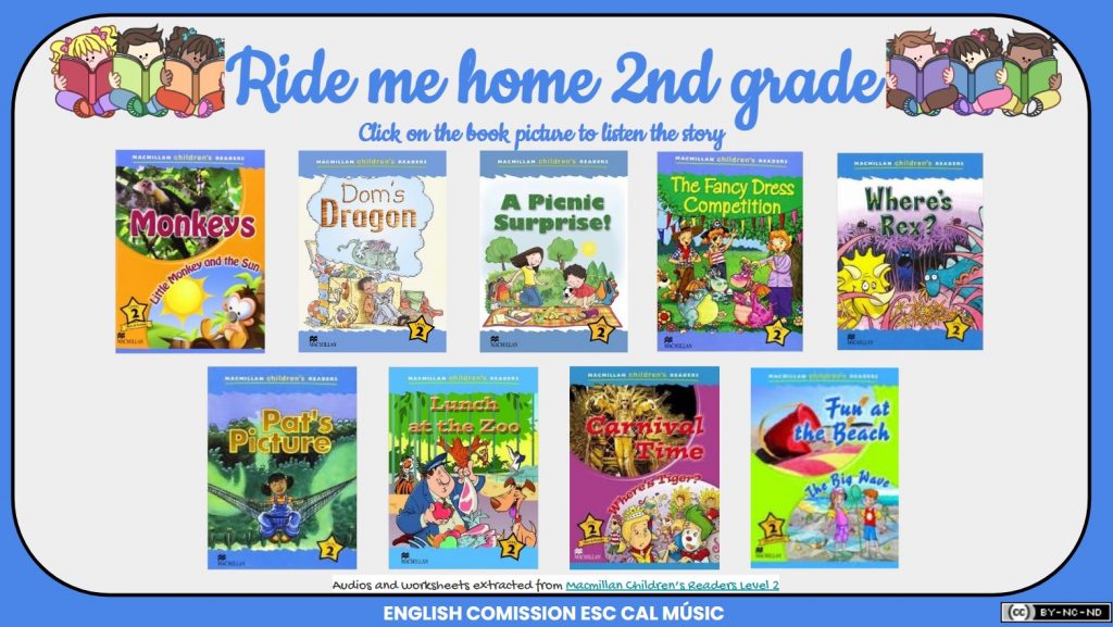 Ride me home is a reading project that begins in Infantile 5 and continues throughout primary school. In this project the school lends English books that are appropriate to each level, and in primary education the students have to do a worksheet related to the book.