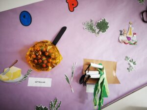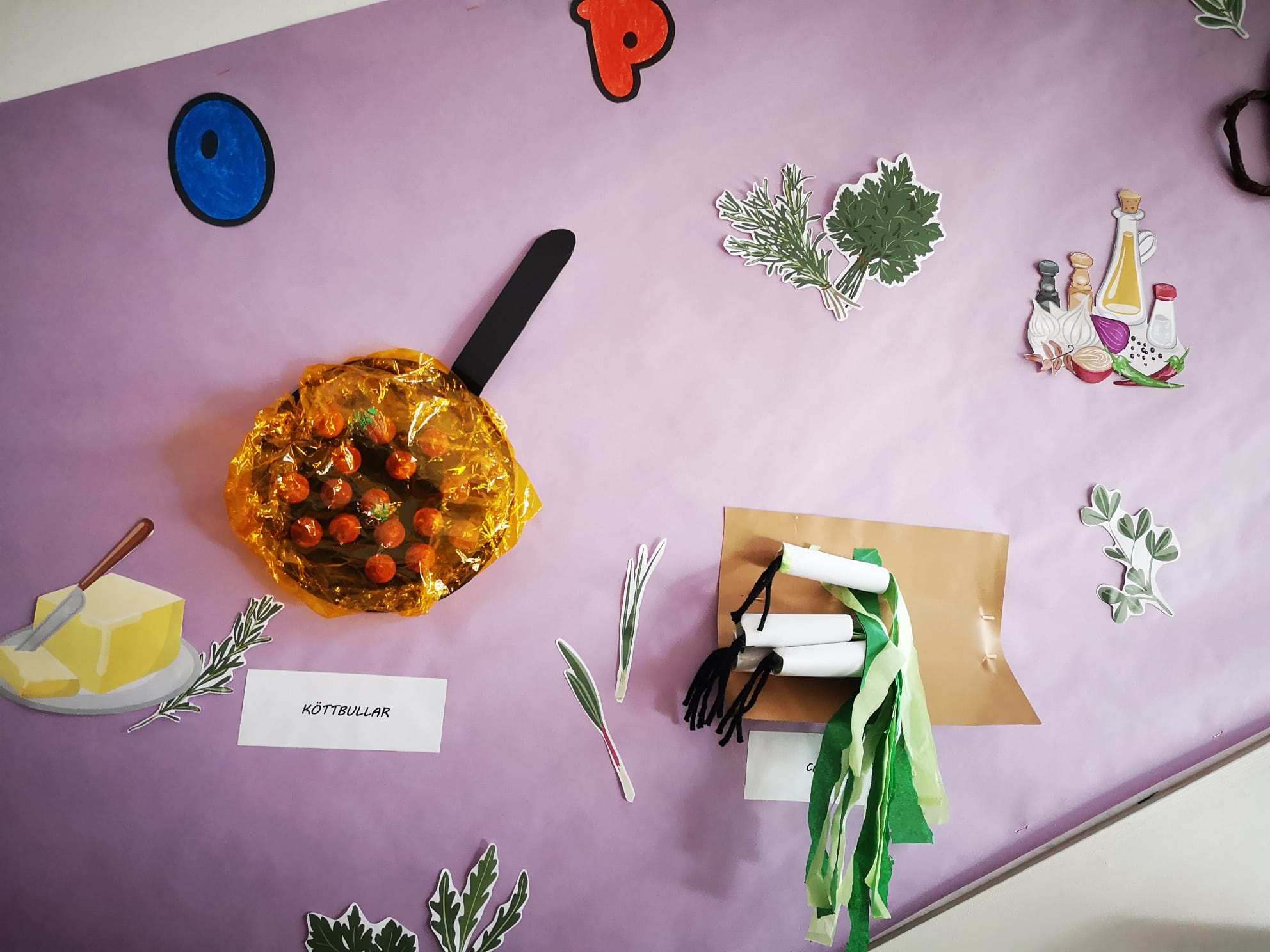 També hem conegut menjars típics d’Europa i aprofitant diferents materials i tècniques els hem recreat per decorar l’escola. Tanmateix, hem pogut conèixer menjars d’altres parts del món a partir del treball fet pels nostres companys/es d’altres cursos.