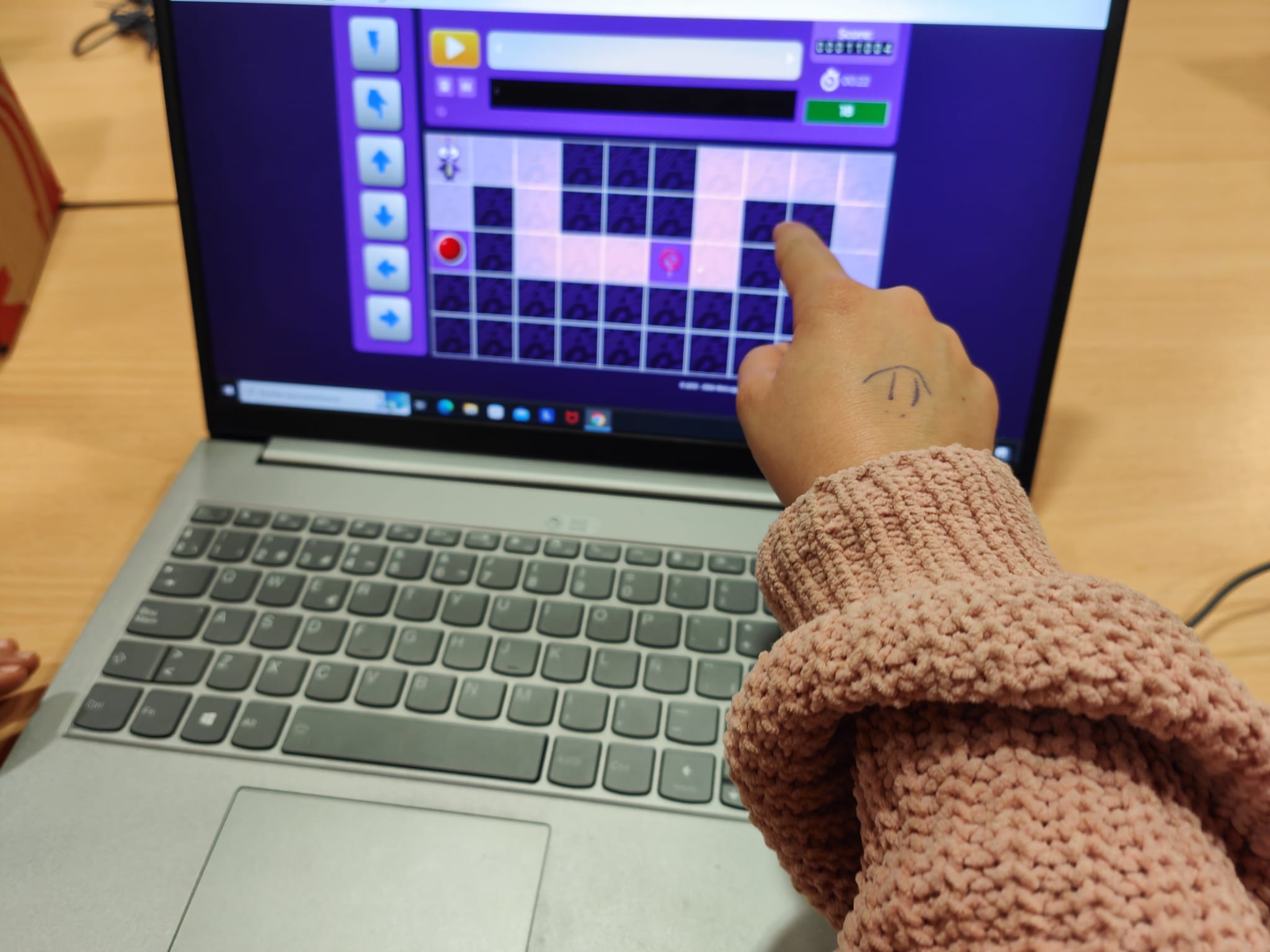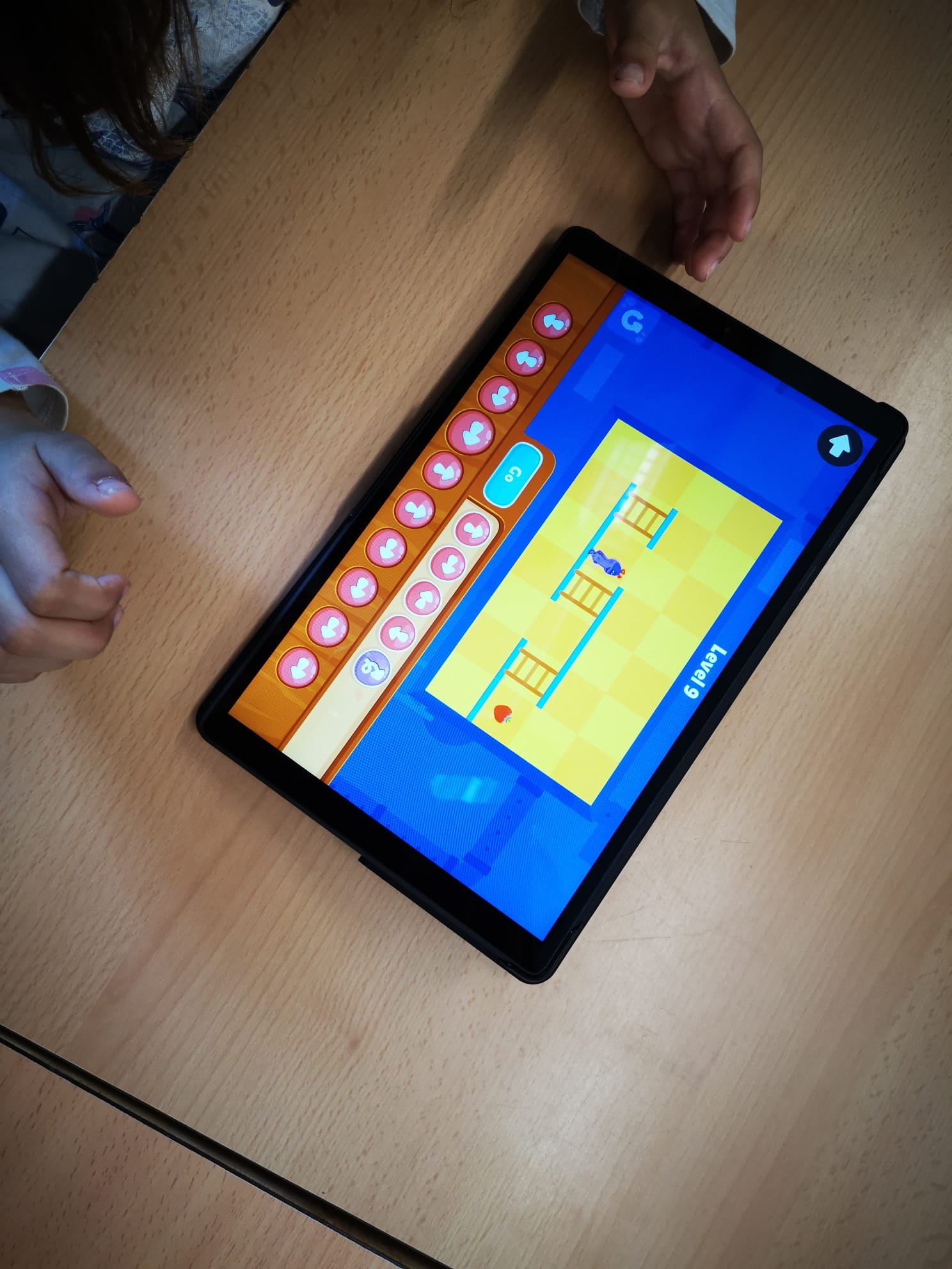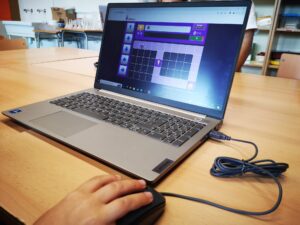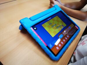 Al taller de robòtica els infants treballen amb l’ordinador i la tablet i han de superar diferents reptes que augmenten la seva dificultat a mesura que avancen els nivells. Per superar els diferents nivells han de fer servir seqüències i indicacions per fer moure els personatges i arribar al seu objectiu.