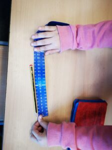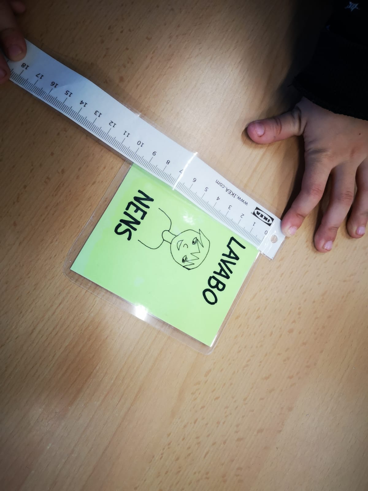 Els nens i les nenes de primer estem treballant la mesura a matemàtiques. Primerament, vam reflexionar de quines coses es podien mesurar i si totes es feien de la mateixa forma. D’aquesta manera ens vam centrar en les unitats de mesura no convencionals: pam, peu i passa, i vam mesurar, per exemple, l’amplada i la llargada de la classe o la nostra taula. A cadascú li sortien resultats molt semblants, però diferents, i va ser el moment de presentar el metre i el centímetre i fer servir la cinta mètrica per a mesurar diferents objectes de l’aula.