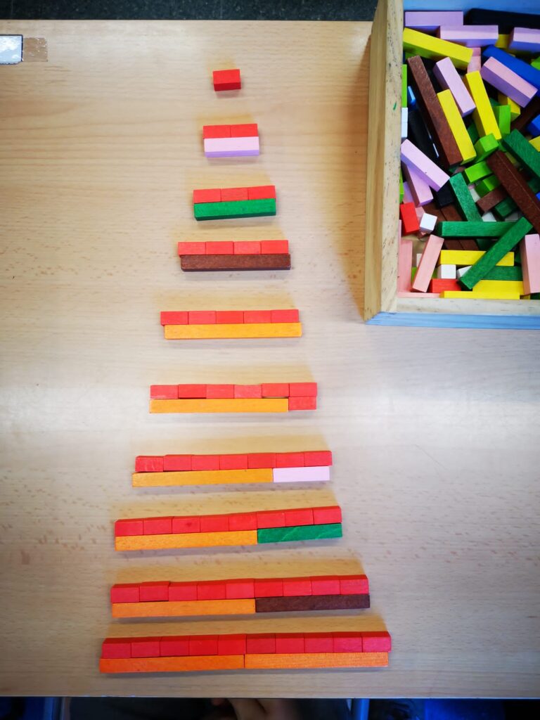 Us deixem un recull de fotografies del dia que vam fer la descomposició de la taula del 2 amb els reglets.