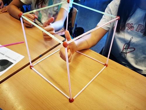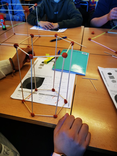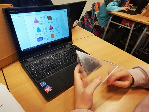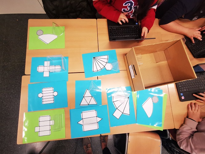 Els alumnes de 6è hem estat coneixent alguns dels cossos geomètrics principals (poliedres i cossos rodons). On els identifiquem en el nostre entorn? Quin és el seu desplegament? Quina diferència hi ha entre una piràmide i un prisma? Quantes arestes i cares té un cub? Com podem calcular el nombre d’arestes d’un prisma sabent el polígon de la seva base? Aquestes són algunes de les qüestions que ens hem anat plantejant. També hem incorporat les eines TIC per poder diversificar i complementar millor l’aprenentatge. Aquí us deixem algunes de les imatges durant les 2 sessions inicials.