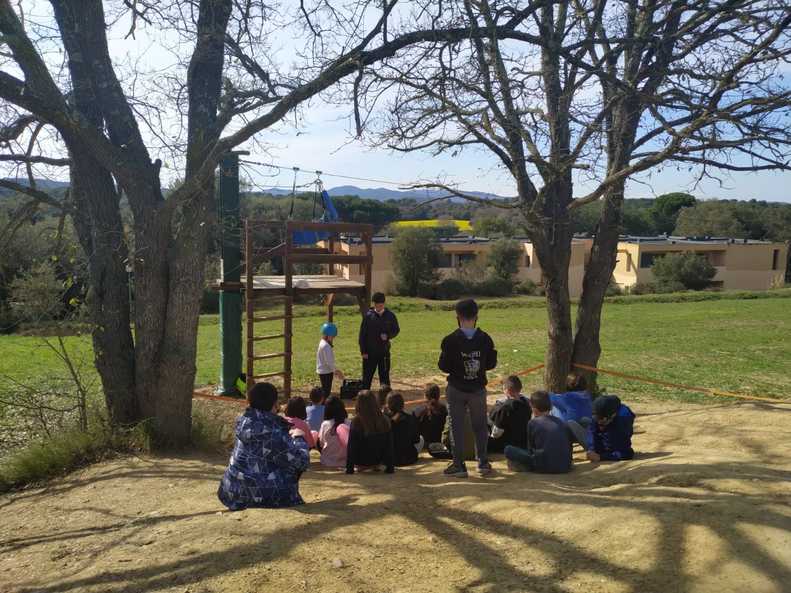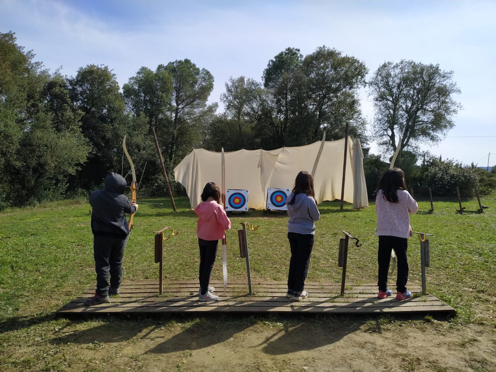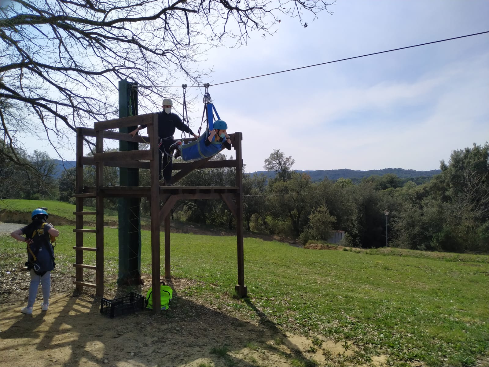 Després de dinar ens hem tirat per una tirolina horitzontal i hem fet tir amb arc.
