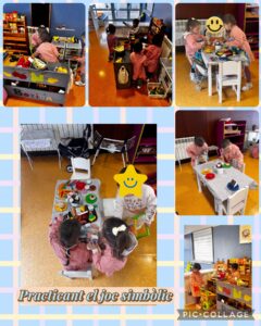 Els nens i nenes d’I3 avui hem experimentat en dos espais diferents: l’aula de joc simbòlic i l’aula de minimons.