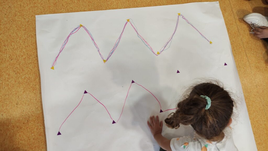 A l’alula d’I4 hem iniciat el treball del traç diagonal continu, tot fent servir diferents tècniques manipulatives.